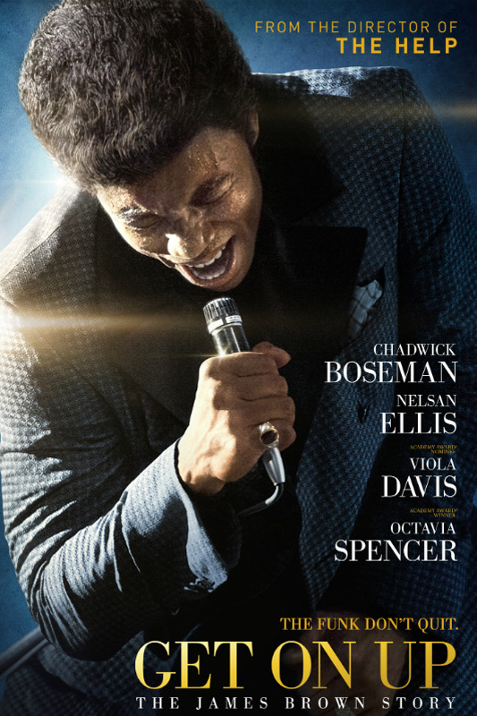 Je voulais voir Mommy de Xavier Dolan en avant-première (un peu par snobisme et découvrir avant tout le monde les chefs-d’œuvre actuels ; un peu parce que se rendre au cinéma est une occupation parfaitement saine, a fortiori quand on s’y rend à bicyclette sous les frimas de l’automne ; un peu parce que j’avais beaucoup apprécié Tom à la ferme et son âpreté, sa rage, son climax vaguement malsain, ses contrastes…). Mais m’y étant pris un chouia à la bourre – et retardé que je fus par un rapide apéro chez mon frère – car oui, les rédacteurs de L’Imprimerie ne sont pas seulement des chroniqueurs émérites et acharnés, ils ont aussi une vie de famille –, il ne restait plus une seule place pour la séance convoitée. Alors je me suis rabattu sur un biopic (co-produit par un certain Mike Jagger) évoquant la carrière incroyable de Mister Dynamite, du Pape du Funk, de ce petit négrillon miraculé né mort-né au fin fond de la Caroline du Sud à une époque où la ségrégation raciale connaissait encore de beaux jours, de ce génie charismatique de la soul – The Godfather of Soul, rien que ça ! –, de cette bête de scène inégalable qui aura notablement inspiré Mickael Jackson ou Prince et marqué de son empreinte et de son énergie les scènes du monde entier : James Brown (Chadwick Boseman) à qui Tate Taylor redonne vie !