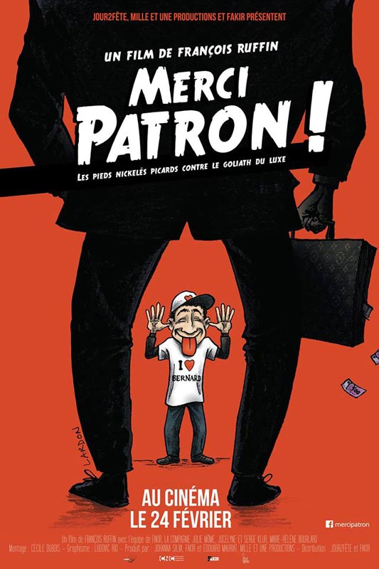 Ben pas de pot à l’Imprimerie, nous n’avons pas pu y être ! Par conséquent nous ne pourrons vous délivrer un avis immédiat sur cette comédie en bleu de travail qui part à l’assaut de l’empire LVMH par le prisme d’un couple au chômage de Poix-du-Nord, près de Valenciennes. Il faudra attendre le 24 février pour la sortie officielle de cette comédie/documentaire, qui risque d’en surprendre plus d’un. Financé en partie sur la toile grâce à une collecte Ulule suite à l’impossibilité de Mille et Une films de bénéficier d’une aide du CNC, Merci Patron est à lister dans les surprises cinématographiques de ce début d’année; ces « pieds nickelés contre le Goliath du luxe » rempliront-ils les salles ? Le public semble pour le moment déjà conquis.