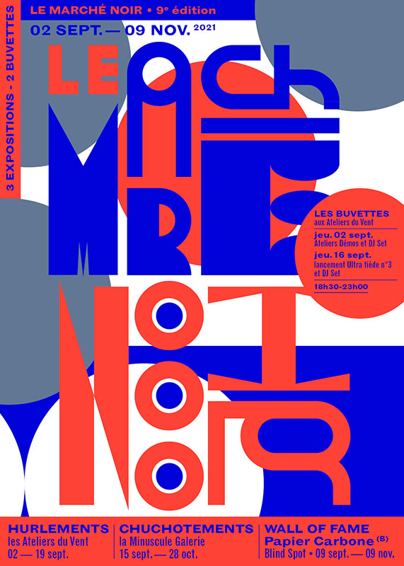 Des œuvres à découvrir jusqu’au 19 septembre aux Ateliers du Vent ; une buvette y a lieu le jeudi 16 septembre. Pour compléter la visite : le Papier Carbone s’expose chez Blindspot jusqu’au 9 novembre, et le pendant plus discret en version miniature titré Chuchotements est à voir à la Minuscule galerie (rue Saint Louis) jusqu’au 28 septembre. Reste à savoir si les artistes travaillent dans le silence ou en criant…