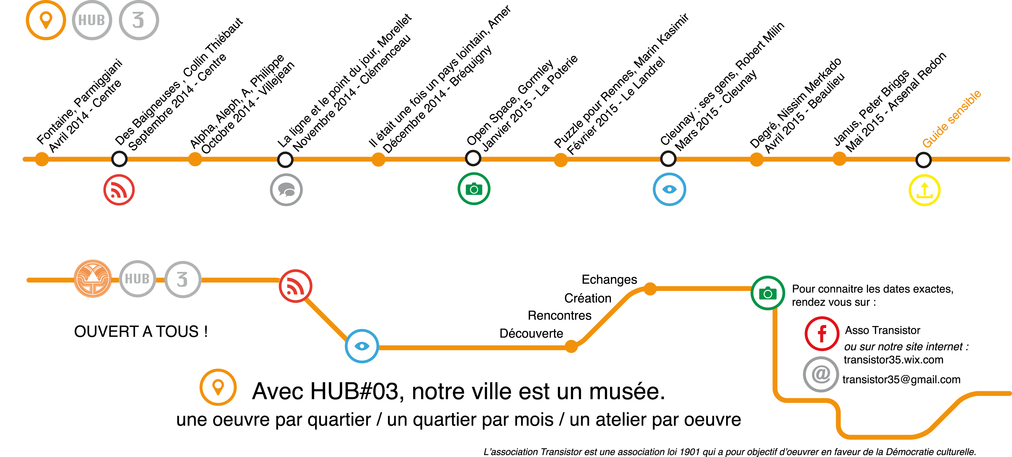 Depuis début 2014, l’association Transistor avec Hub#3 part à la rencontre des œuvres à ciel ouvert présentes dans la ville de Rennes. L’occasion de visites explicatives, et aussi de récolter les paroles des habitants. Prochain rendez-vous dans le quartier de Cleunay avec Ses gens de Robert Millin.