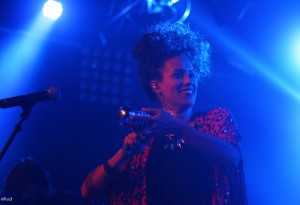 Il ne faudra qu’un morceau à Che Sudaka pour prendre la mesure de la foule et l’emporter dans son sillage festif. Bientôt suant à grosses gouttes dans son bleu de chauffe, le leader barcelonais Kachafaz ne ménage pas sa peine ni ne cache sa joie. Son compère Leonardo Gabriel Fernandez, dit Leo, au chant et à la guitare, en maillot de football et le front ceinturé d’un bandeau arborant ostensiblement l’acronyme H.I.J.O.S. (pour « Hijos por la Identidad y la Justicia contra el Olvido y el Silencio », c’est-à-dire le nom d’une organisation militant au Guatemala et en Argentine au sujet de disparitions inquiétantes), torse nu à la fin du concert, aura lui aussi largement contribué à la réussite de ce concert aussi chaleureux que tonique. La foule bat la cadence, saute en l’air, s’accroupit, exulte et lève les mains vers le ciel étoilé vers le plafond de toile étoilé du chapiteau du Thabor. Sergio Morales, au clavier et à l’accordéon, est surnommé « le Magicien », à bon escient. Quelques notes lui suffisent pour « transe-porter » le public largement conquis. Loin d’être en reste, le quatrième larron, le Colombien Jota, surnommé « El Puma », n’aura pas non plus démérité, puisqu’il finira lui aussi le torse luisant et la mine satisfaite. Les thèmes qui leur sont chers auront été abordés (la rébellion des paysans contre Monsanto; les sans-papiers et la soi-disant illégalité qu’on leur accole; les pratiques amoureuses plutôt que les planifications militaires…) et ils auront apporté un maximum de joie aux très chanceux Rennais présents. C’est donc le cœur vaillant et trempé de transpiration que je m’en retournerai vers mes pénates, toujours en pédalant dans la douceur de la nuit – tandis que les roadies remballent le matériel sur scène et que Dj Soumnakaï, solitaire et stoïque derrière ses platines, joue dans un chapiteau surchauffé mais déserté par un public repu.
