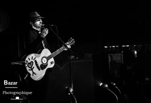 Eh oui, il arrive enfin, accompagné de ses musiciens, tout en noir, un corbeau blanc sur le tee-shirt. C’est parti pour 1h45 de concert. Le concert débute sur des paroles et des chansons des vieux albums de Thiéfaine, balancements de tête, fredonnements dans le public, les musiciens nous font rentrer tout doucement dans un univers mélancolique.[envira-gallery id=’64001′]