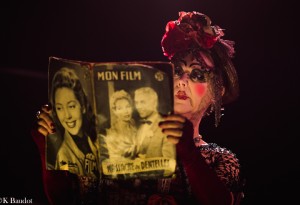 Quand on arrive, il y a deux péniches côte à côte, il faut monter dans l’une pour accéder à l’autre. C’est à l’étage inférieur de celle-ci que se déroule les spectacles. Quand on y entre, il y a, d’abord, une vingtaine de hauts tabourets, puis des fauteuils rouges. Et au fond de la salle, il y a la scène. Et en ce soir du 14 octobre 2017, à vingt heures trente, cette salle est pleine de monde.