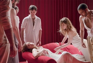 Le concert de ce dimanche prend place dans la chapelle de l’École de la marine marchande, au sommet des remparts de la ville. Catastrophe y fait déferler une pop aux accents psychédéliques et be-bop, au son des synthés, de la basse et des bongos, de chants choraux et d’harmonies vocales qui résonnent sous la voûte de l’ancienne église. La scène est pleinement pour le groupe un lieu de performance du corps, certains membres débordant librement du plateau pour danser parmi le public, ou encore allant jusqu’à avaler, les unes après les autres, les peurs des spectateurs notées par ces derniers sur des morceaux de papier. Intense, à la fois grave et joyeuse, une performance électrisante qui emprunte autant au rituel, à la comédie musicale, qu’à une chorale gospel… Une véritable célébration, dont on ressort vibrant, galvanisé.