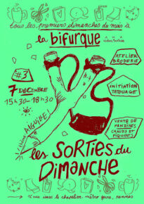 Ah ces fameux dimanches où on s’ennuie, où l’on ne sait pas quoi faire. Et si on sortait en famille ou entre amis découvrir Bifurque, un espace dans l’atelier Bonjoure pour atterrir après une semaine de Transmusicales bien remplie ? Au menu le dimanche 7 décembre, biscuits et ateliers au 16 rue Isaac Le Chapelier !