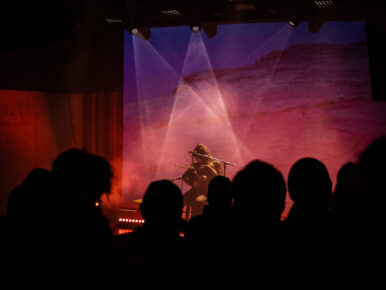 C’est ensuite Brìghde Chaimbeul, à prononcer « Breetch-er Hime-bowl » avec un accent anglais, qui a pris place sur scène seule avec ses Scottish smallpipes, et qui a décidé de la prochaine destination : les Highlands écossais, dans une musique néo-traditionnelle celtique envoutante. Venue de l’île de Skye, elle a mêlé tradition folk et sensibilité contemporaine, nous proposant même une pause pour nous conter une histoire, puis reprenant le voyage sonore accompagné de passages chantés en harmonie avec la cornemuse…. et quelle voix ! C’était élégant, immersif, en témoignait l’audience complètement transportée dans la puissance et l’intimité de sa performance.