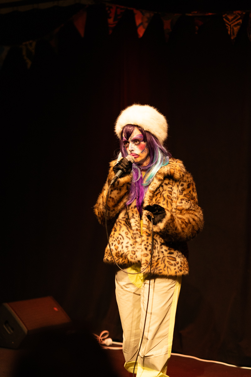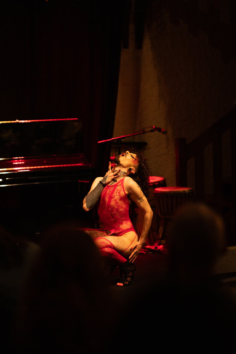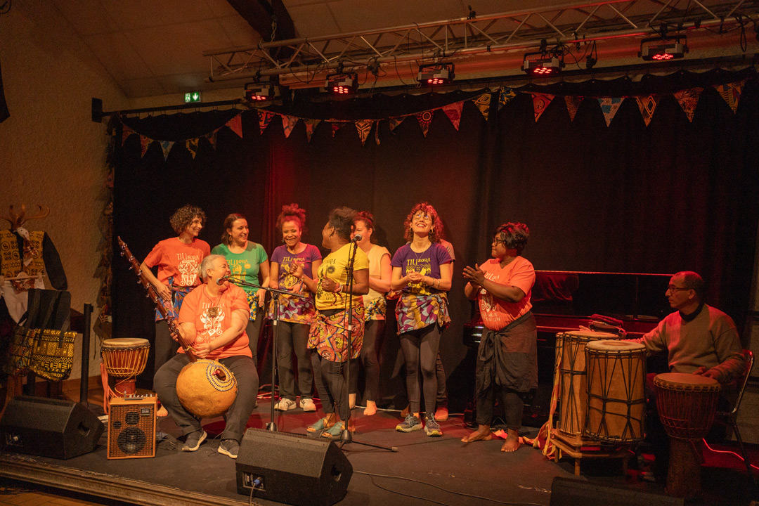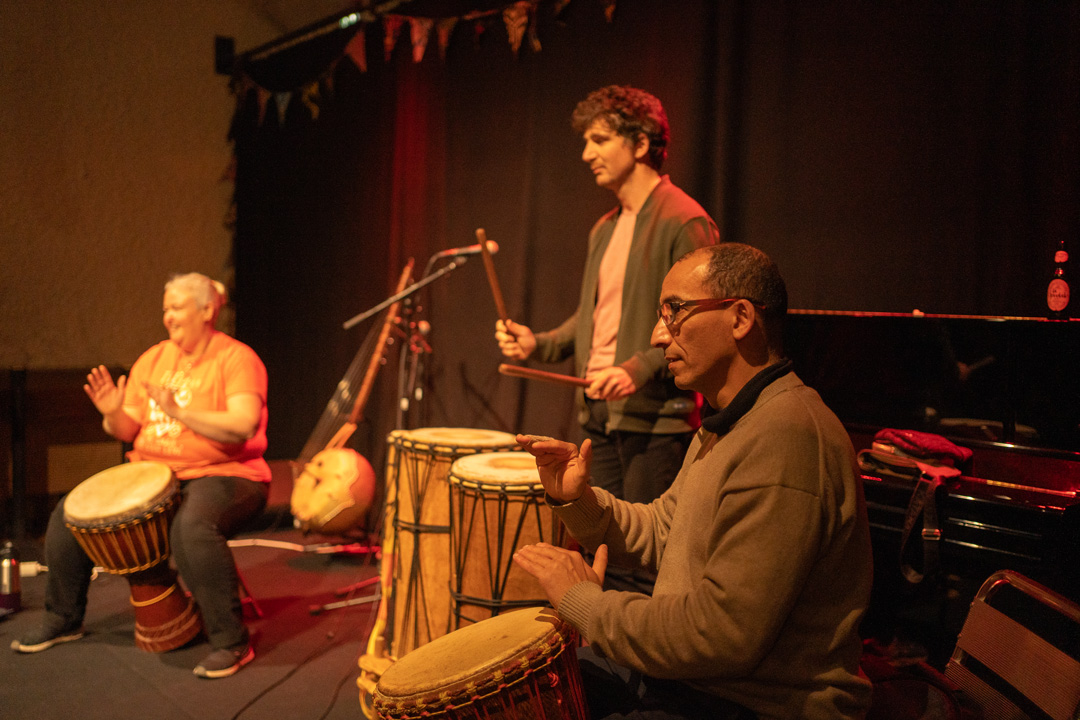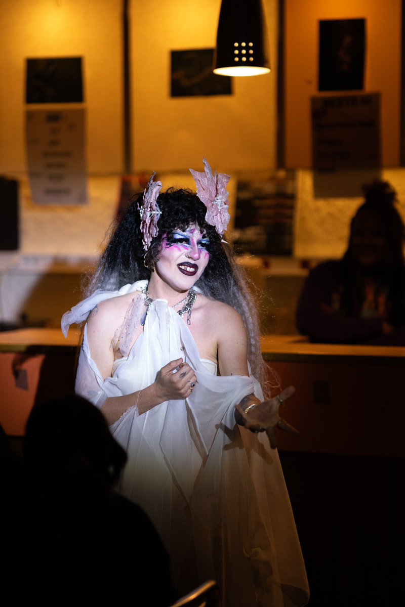La soirée Divers Angles s’inscrivait cette fois dans le cadre du mois pour les droits des femmes et minorités de genre, dont le but était de raconter les femmes au pluriel. Les personnes ayant répondu présentes on pu écouter l’association de percussions et de danses africaines, Sinzhoi. Sur les rythmes des djembé les organisatrices ont initiés des danses avec le public afin de réchauffer les corps et partager une pratique conviviale. Le collectif de drag les Orphelin· e et le drag king Aaron Azure étaient également présent· es, où performances parodiques et sensuelles ont rythmé le reste de la soirée. Une rencontre donc, où les voix des femmes et minorités de genre ont résonné dans les corps et les chansons.