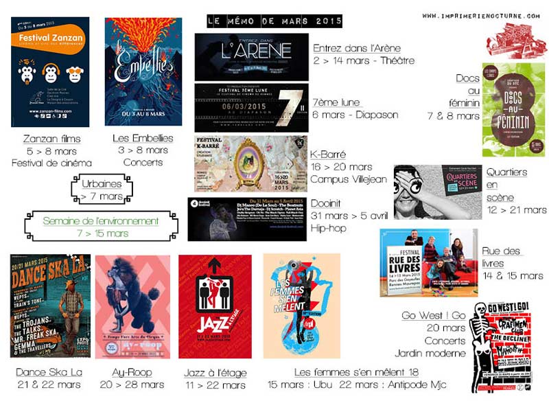 L’annonce du printemps ? Une envolée d’événements tels des canards sauvages au-dessus de Rennes ? Le mois de mars 2015 est chargé. Le mémo s’en trouve bien rempli. Nous n’allon...